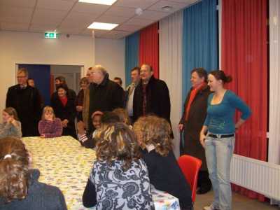 ![]() Na een gezamenlijke maaltijd blikte de voorzitter van de dorpsraad Jos Tamminga terug op een succesvol jaar voor de dorpsraad Vortum-Mullem. Het jeugdhuis is volop in gebruik en de dorpsraad groeide van 4 naar 14 leden. Vervolgens presenteerde het college de onderwerpen openbare ruimte, verkeersveiligheid, recreatie en toerisme en woningbouw. De dorpsraad had hierna een diashow voor het college in petto met foto's van wandel- en fietspaden die niet goed toegankelijk waren. Wethouder Van den Brand zei dat de gemeente op het moment druk bezig is met een plan voor het verbeteren van de fiets- en wandelpaden in de gemeente. Burgermeester Van Soest sloot de avond af: "We vieren dit jaar dat de gemeente Boxmeer in haar huidige vorm 10 jaar bestaat. We zijn er trots op dat een dorp als Vortum-Mullem hiervan een onderdeel is. Het gaat hier goed, en dat komt mede door de enorme inzet van de dorpsraad Vortum-Mullem!". | |