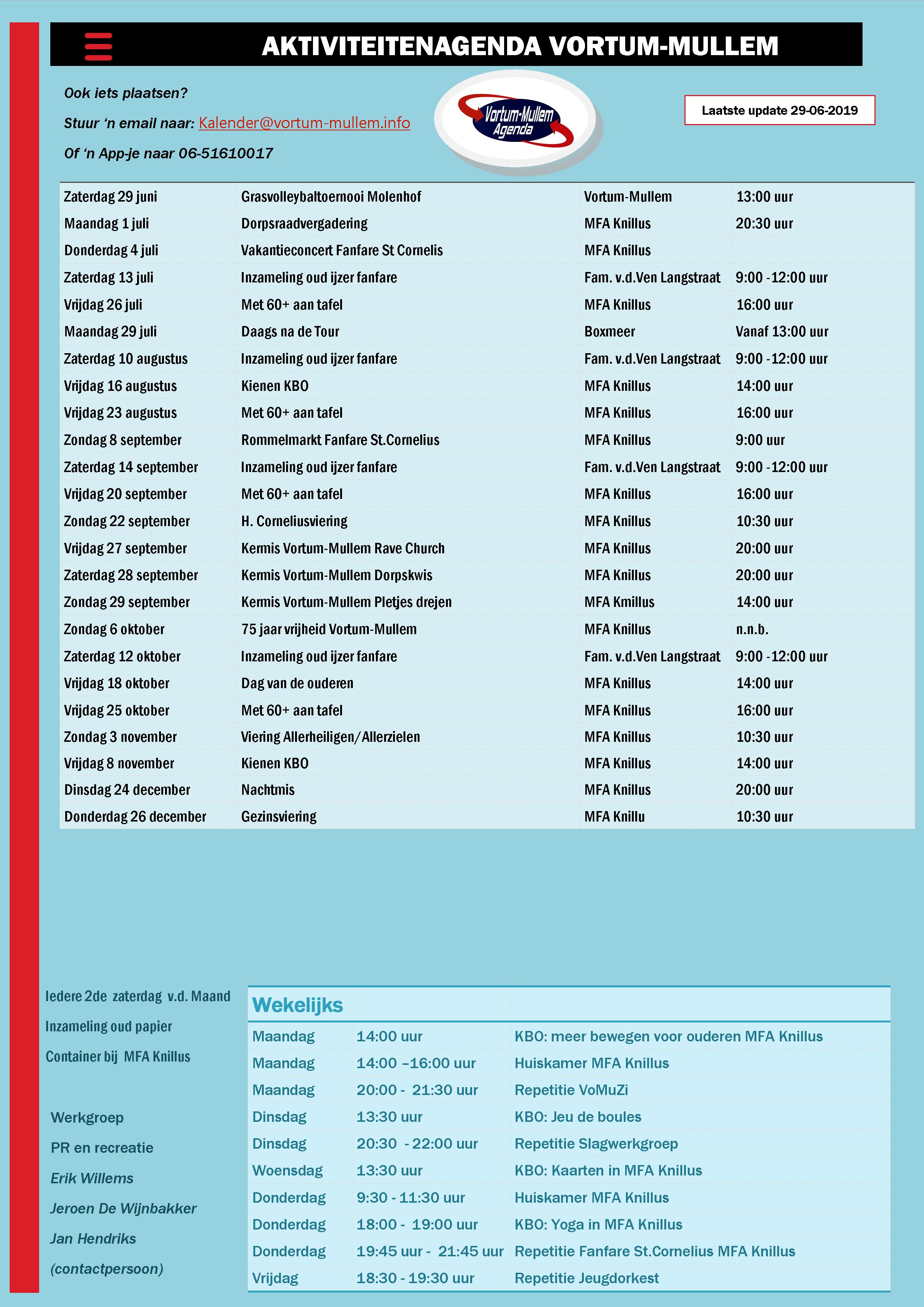 Wilt u ook iets laten plaatsen stuur 'n email naar kalender@vortum-mullem.info