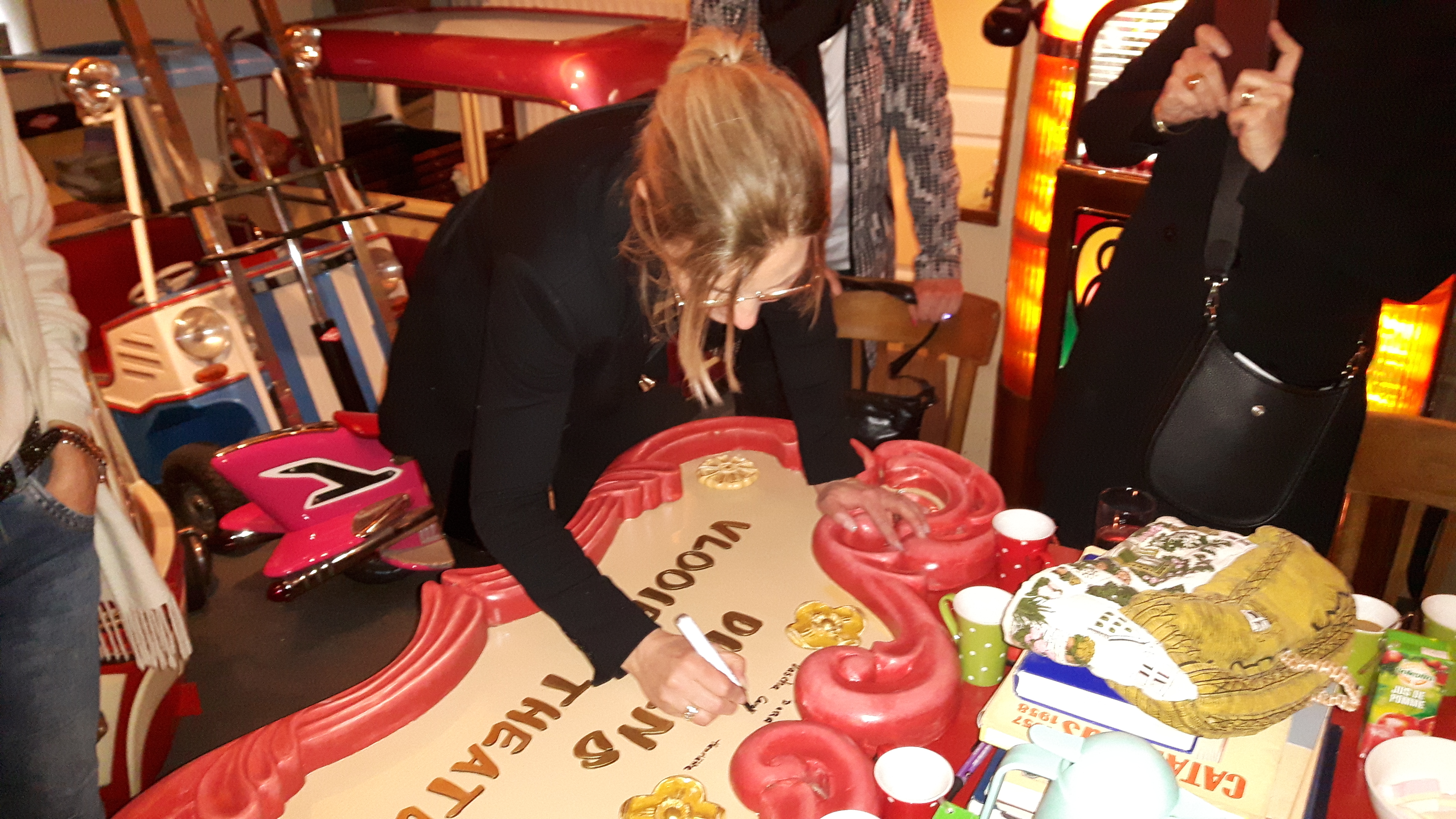 Afgelopen zondag was het dan zo ver. De vrouw van Henri, Dora was hier met haar 3 dochters, 7 kleinkinderen en zelfs 2 achterkleinkinderen om het bord van manlief, vader en opa te tekenen. Het werd een prachtige en vooral gezellige middag en het bord hangt inmiddels op een mooi plekje.